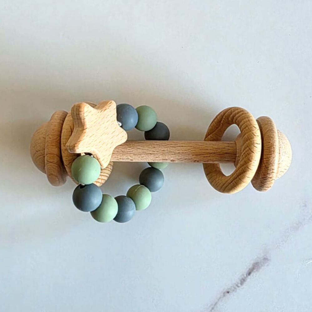 Mordedor Sensorial de Madera y Silicona Personalizado | Verde