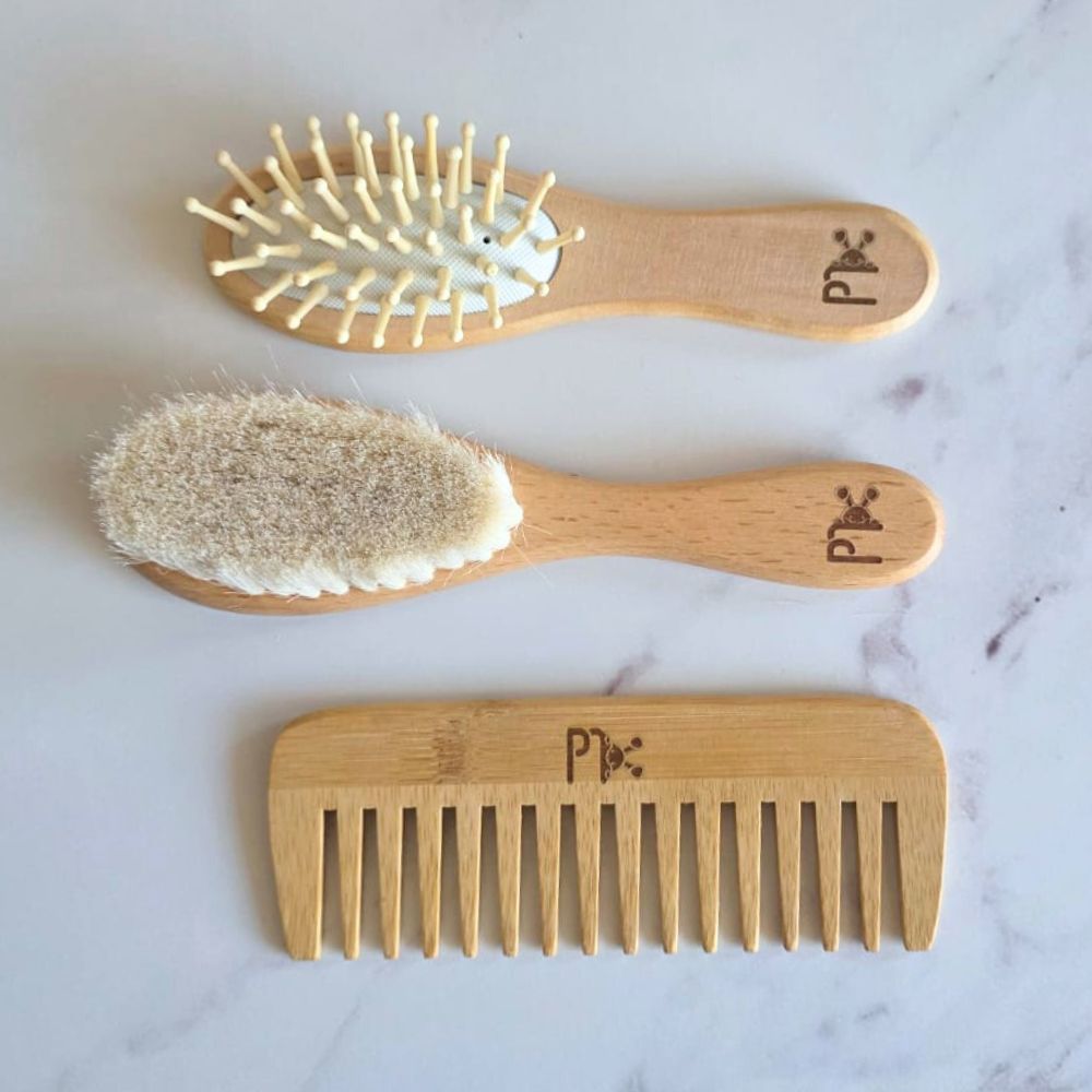 Set de 3 Piezas de Bambú Personalizado | Cepillos y Peine para Bebé